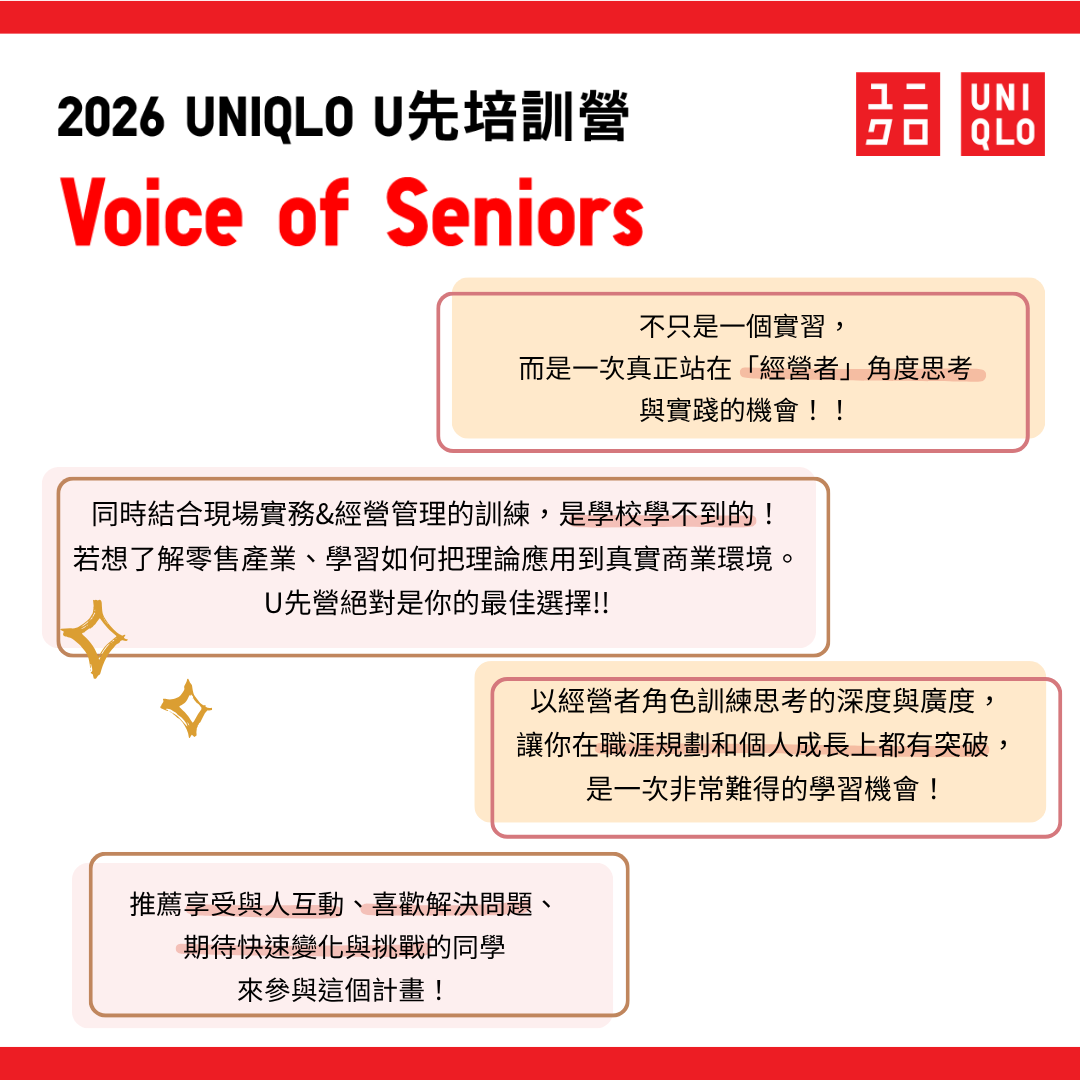 ‼️ 實際感受 UNIQLO 儲備菁英的魅力、一窺國際品牌的管理心法+搶先取得夢幻Offer ‼️